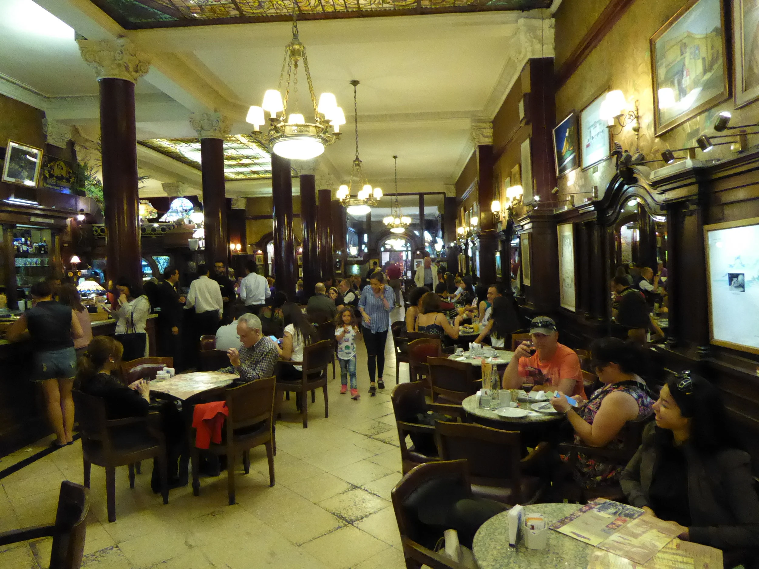 Downtown, in front of the pink Presidential Palace, the central square is lively. Protesters representing one of the many political factions in a country that our guide indicates is as similarly polarized as we are, mix with government workers on lunch break alongside tourists, all of us enjoying a warm spring day. We take advantage of this opportunity to break away from the group to have a latte and some churros and chocolate at Cafe Tortoni, a famous old French style bistro, which was once the hangout for many of Argentina's poets, writers, artists and intellectuals.