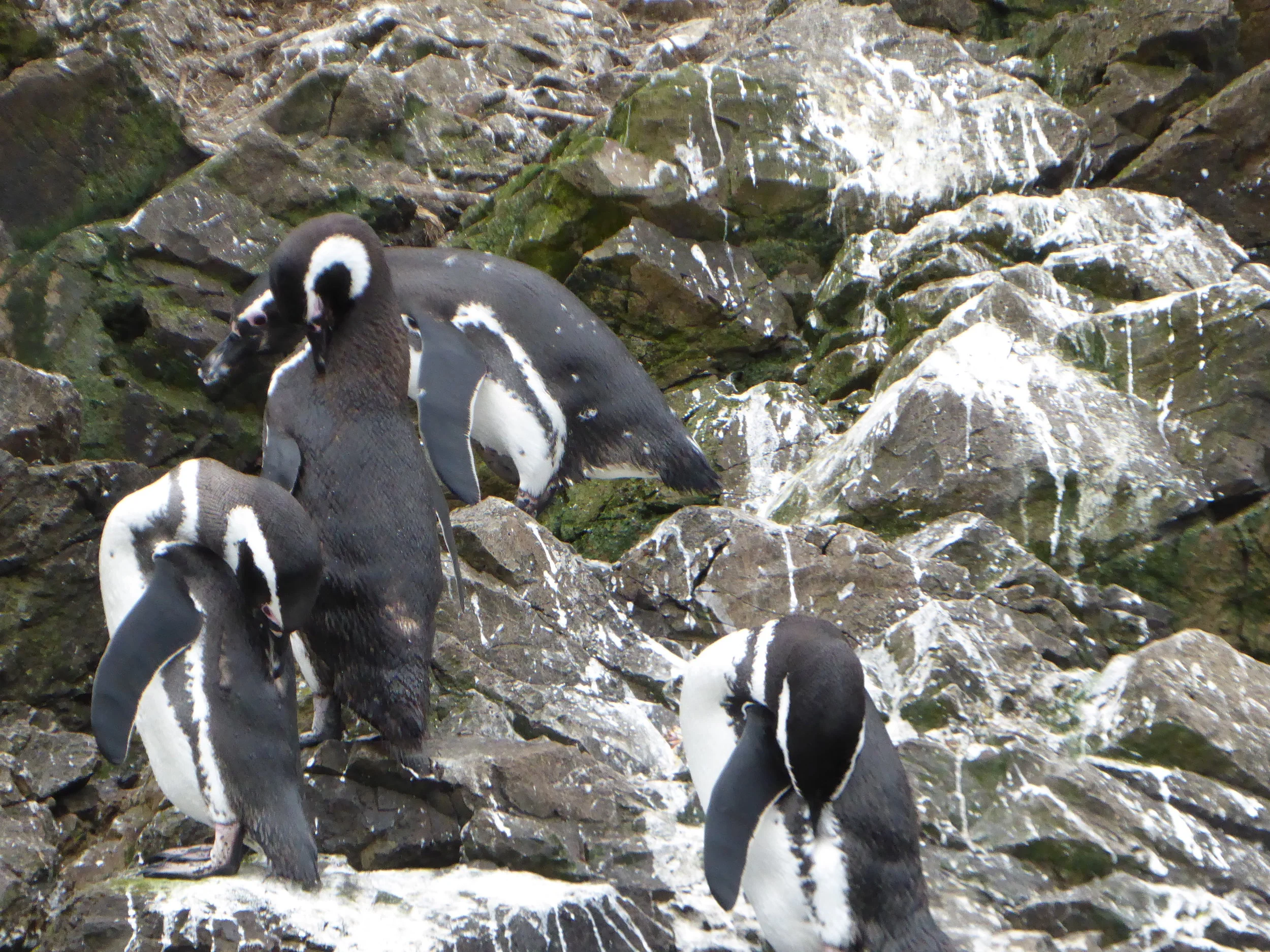 A few nights are spent on Chiloe Island ("Looks a lot like the San Juan Islands in Puget Sound") where we see UNESCO world heritage churches. There are many of these wood-shingled churches throughout this remote area, the result of a dispersed and sparse population and the desire of the Catholic church to settle this territory. This island is also a great place for the "birders" in our group who insist on photographing every "LBJ" (our code word for "little brown jobbies") and, for the non-birders (ourselves included), there are condors and penguins! We learn to distinguish between the Magellanic and the Humboldt Penguins.